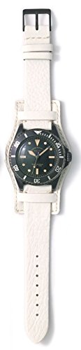 VAGUE WATCH CO.의 기함 모델.이탈리아「GUIDI&ROSELLINI」의 호스 레더를 사용한 받침대부의 핸드 스텟치 벨트를 장착 했습니다.벨트는 양단을 접지않고 자른채로 처리로 한 낭비이다디자인를 생략한 사양입니다.아마미 오오시마의 전통 적인 기법에 염색해 낼 수 있었다「니염색」의 벨트를 사용 하고 있습니다. 낭비인 부분을 털어낸 날쌔고 용맹스러운 포름이 된 이 모델은 GUIDI레더가 강건한 벨트로도 피트 해 팔에의 장착감도 크게 증하고 있습니다./10기압 방수/팔 주위(최대) 약21cm