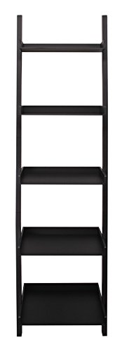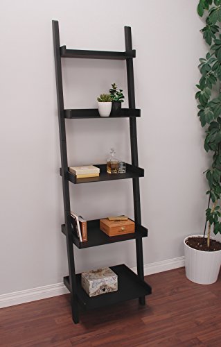 - Feature : Leaning 5-tier ladder wall shelf for stylish, space-efficient display and storage / Raised shelf sides keep items secure / Solid MDF construction in choice of black, white and espresso finishes / Overall Size: 67h x 18"w x 14"d - Each shelf holds up to 10lbs