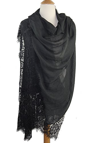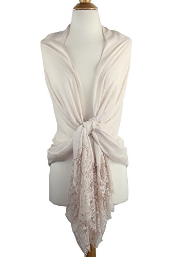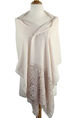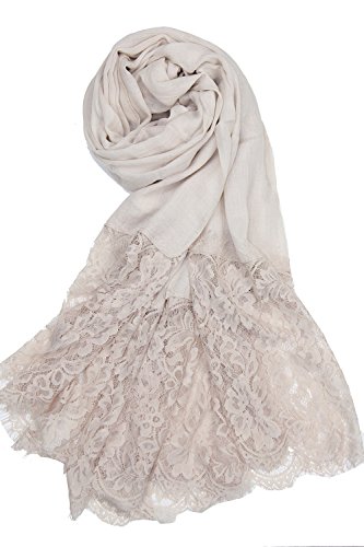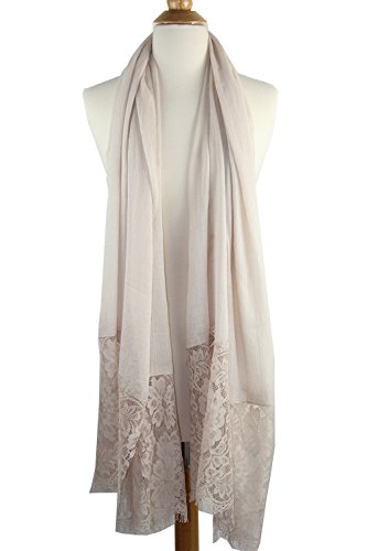 -. Feature : 50% cotton 50% viscose. Nice soft cottony and smooth fabric that can go casual or formal. Dimensions: 71" x 27" / 180 x 69 cm approx. / The elegant evening shawl is featuring a 11" floral lace pattern and scalloped details. Lace is stitched accurately at both ends. It's delicate but durable with a sheer and extremely soft feel. / A versatile piece, this lace-paneled scarf can worn as a traditional or styled as a shawl over a dress. Large enough to be worn many ways: a summer evening shawl, stole, swimsuit cover-up, beach wrap, shoulder covering, headscarf, hijab, etc. / Made from lightweight seasonless fabric, it's a must-have for all the seasons and nice gift for your family members and friends. The color is very elegant and goes with everything very well. / Hand wash in cold water. Do not bleach. Hand wash could use hair shampoo in cold water. Wash individually. Squeeze gently and do not twist. Hang or lay flat to dry.