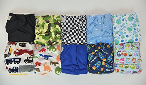 10 PACK POCKET CLOTH DIAPERS WITH 20 INSERTS (2 INSERTS PER DIAPER)-BOY PACK 1