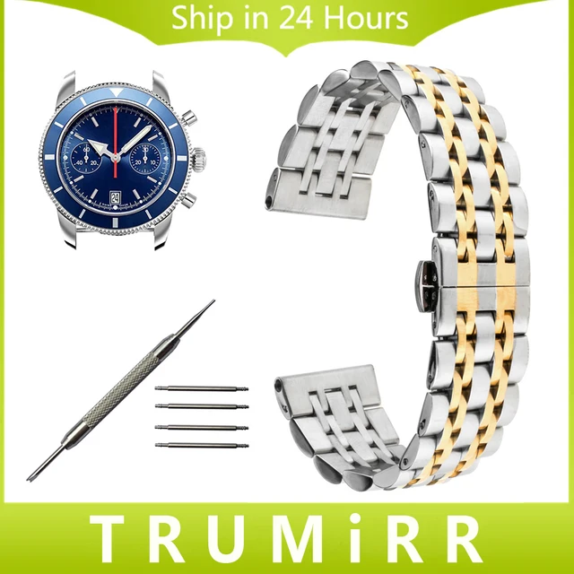 | [해외] 20 미리메터 22 미리메터 스테인레스 스틸 손목 butterfly 버클 스트랩 breitling 시계 밴드 손목 벨트 팔찌 블랙 로즈 골드 실버 |