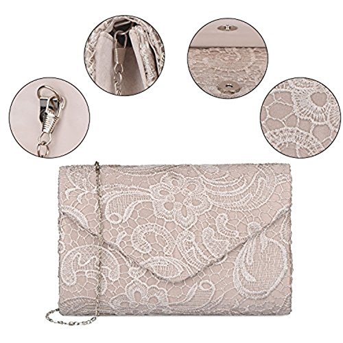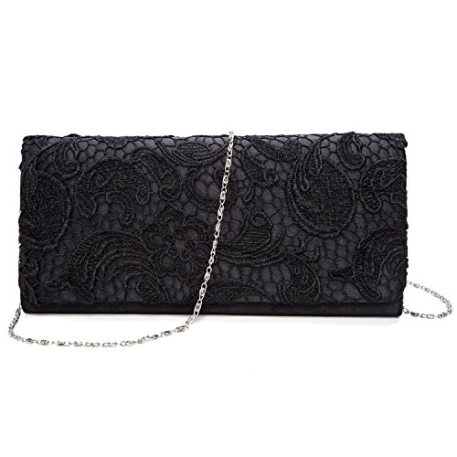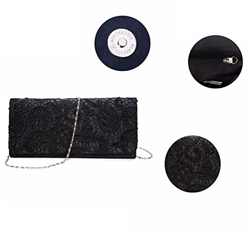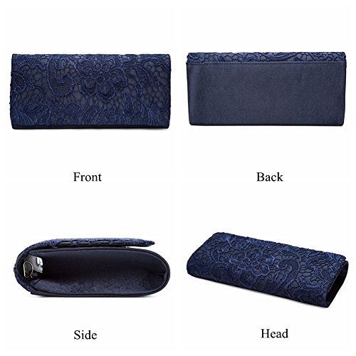 Features: Size: 9.85"(L) * 1.97"(W) * 5.12"(H) Material: soft satin lace Closure type: magnetic closure Occasions: wedding/prom/party/black tie/show/cocktail/night out Fit enough: cell phone/small wallet/mirror/lipstick/makeups/cash/credit card/car keys Package Included: 1 x Evening Clutches Bags 1 x 46.49" Chain Notes: