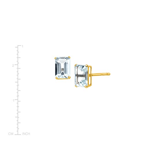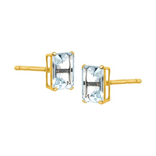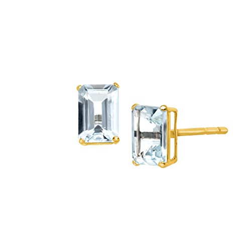 Add just a hint of color to your collection! Emerald-cut natural aquamarines, totaling 7/8 ct, are crafted in settings of 10K gold and finished with posts with friction-backs. Pieces measure 1/4 by 1/8 inches.Feature