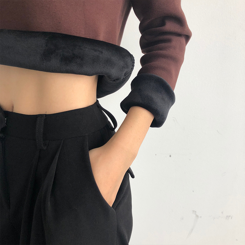 ベーシックなデザインの長袖ハイネックトップスに裏起毛をプラスしたタイプです♪