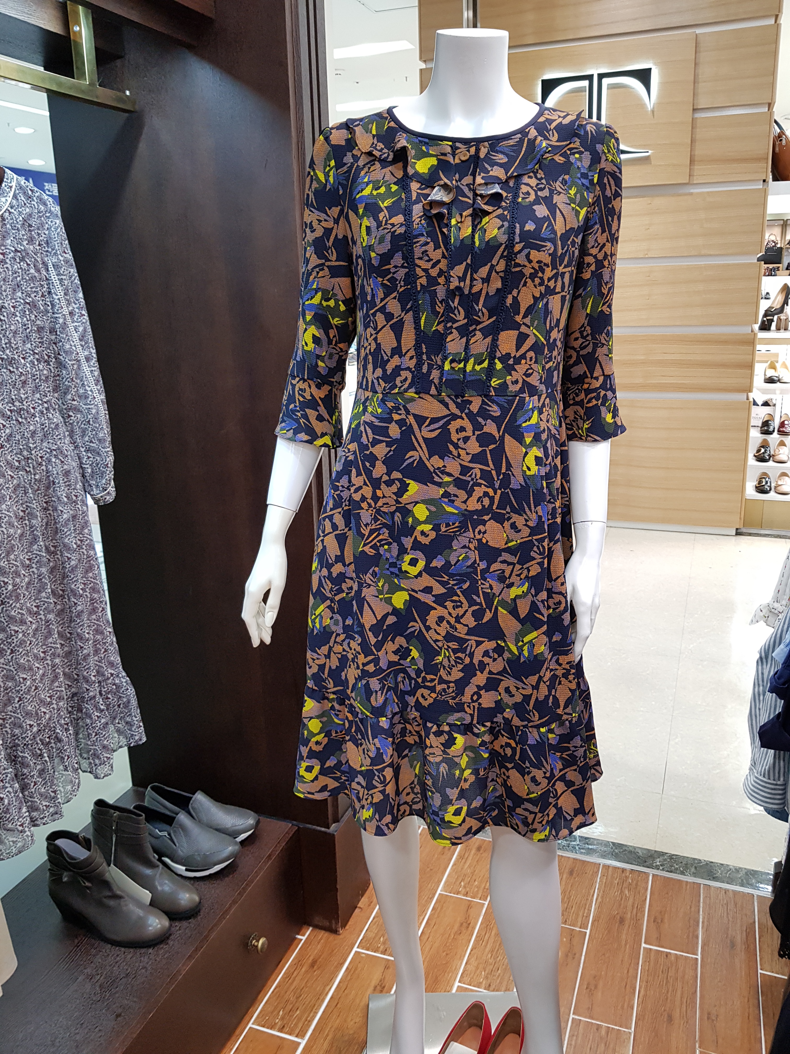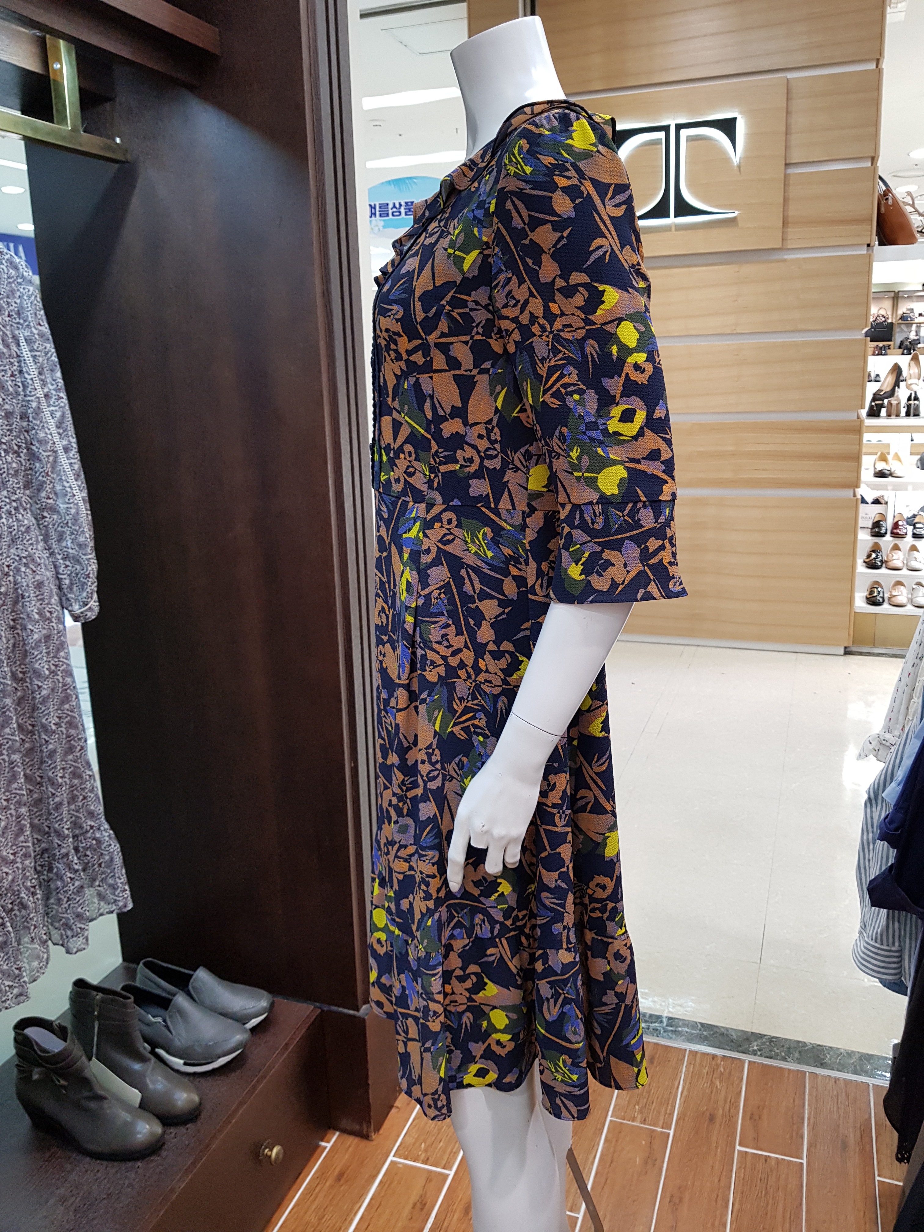 기비~샤방한느낌의 여성스런 쉬폰원피스입니다 소매단의 셔링과 스커트킅단의 셔링이 사랑스럽고 목선의 러플이 카라느낌이라 정중한분위기연출에 좋은 아이템입니다 총장94센티입니다
