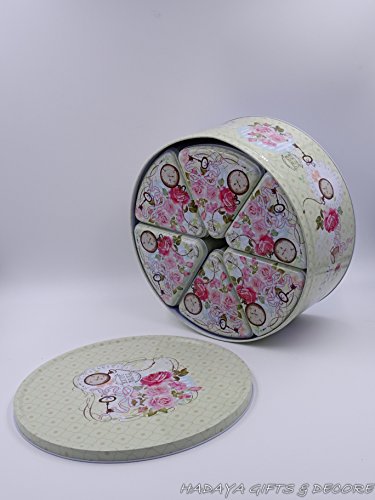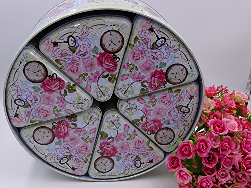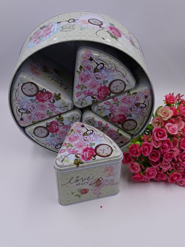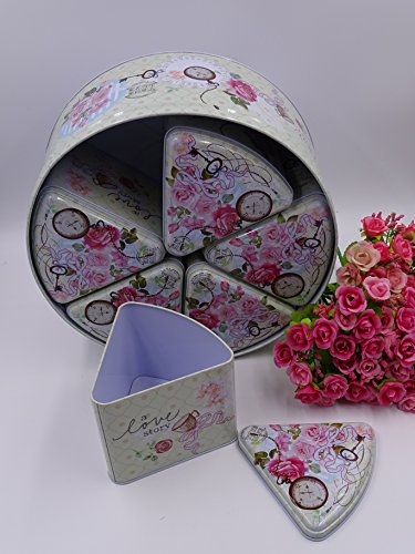 Elegant french style 7 Pcs yellow storage tins ,shabby chic , one big round tin with 6 small triangle shaped tins