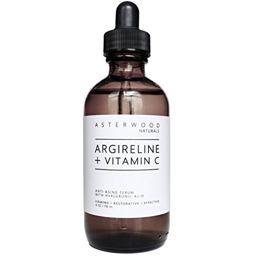 ARGIRELINE + VITAMIN C SERUM WITH ORGANIC HYALURONIC ACID 4 OZ - ANTI AGING, ANTI WRINKLE - FACE MOISTURIZER DRY SKIN & FINE LINES - SKIN RELAXER - ASTERWOOD NATURALS - 4 OUNCE GLASS DROPPER BOTTLE