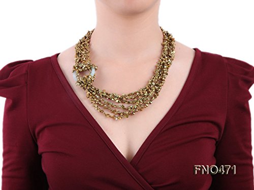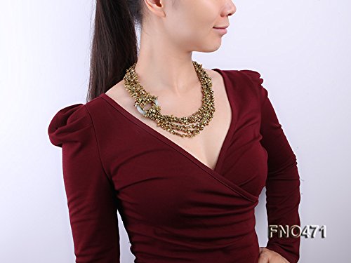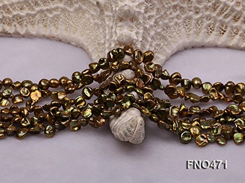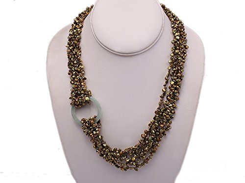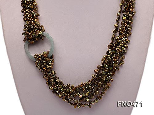 Description *This is a charming six-strand necklace strung with green keshi pearl beads(4-5mm).A jade circle is used in the necklace as a decoration.