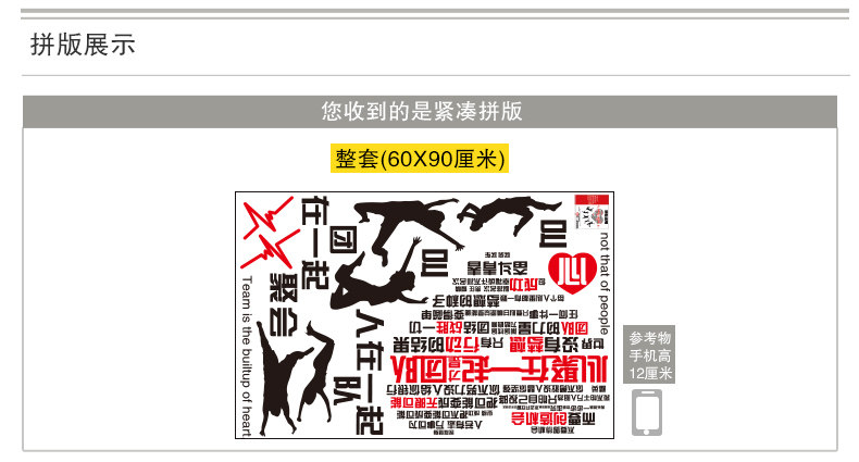 Sizes, "you receive the goods and typesetting" size and "collage after size reference"