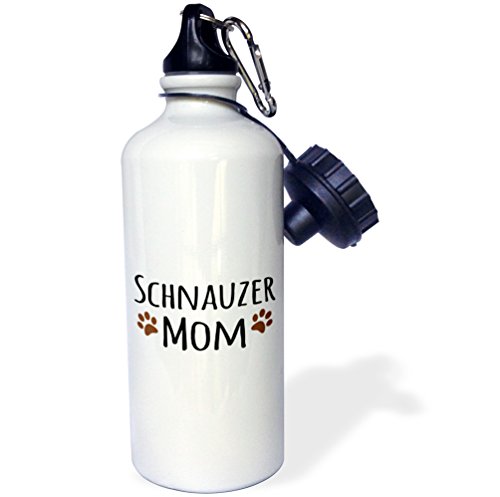 3dRose wb_154188_1 "Schnauzer Dog Mom-Doggie by breed-muddy brown paw prints-doggy lover-proud pet owner mama" Sports Water Bottle, 21 oz, White