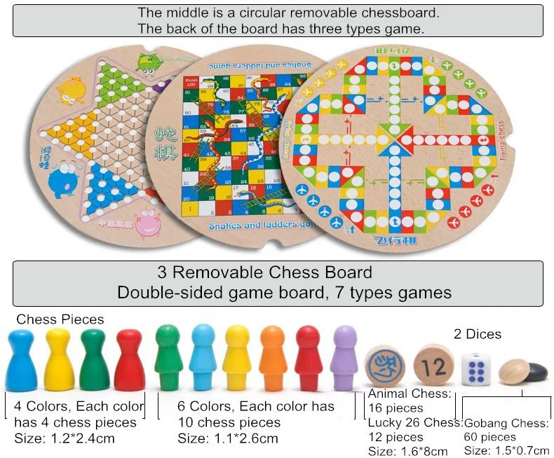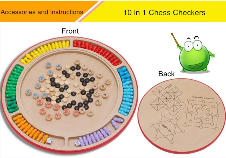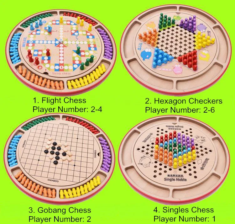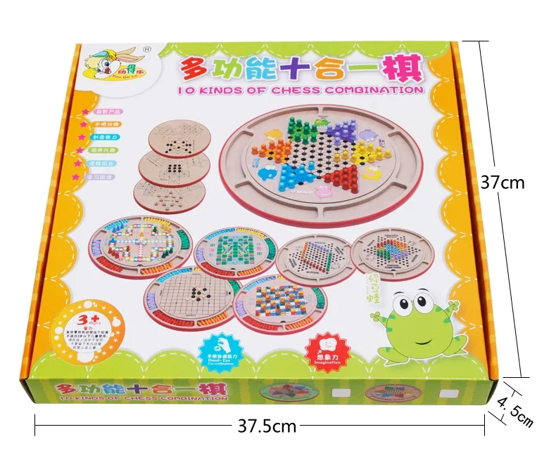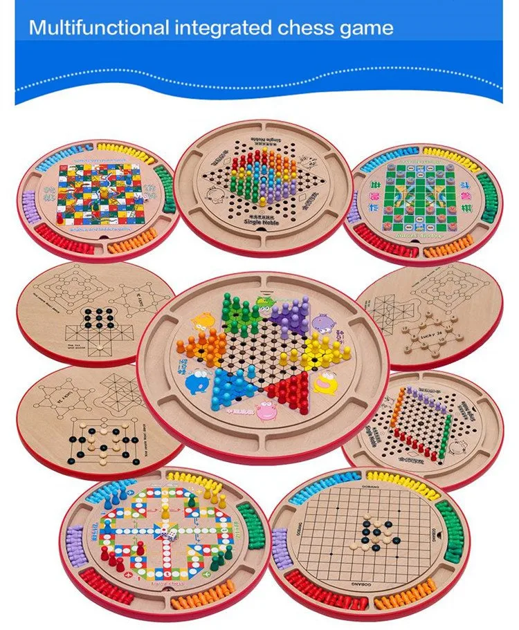 10 in 1 Multi-function Wooden Chess Checkers Kids Child Educational Toy Parent-child Interaction Puzzle Game Flight Chess Gobang