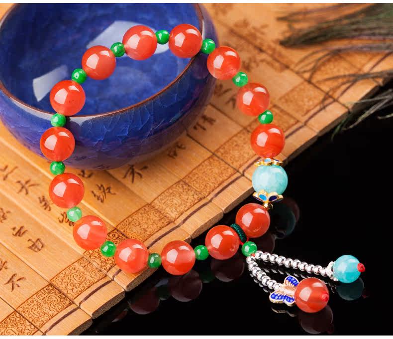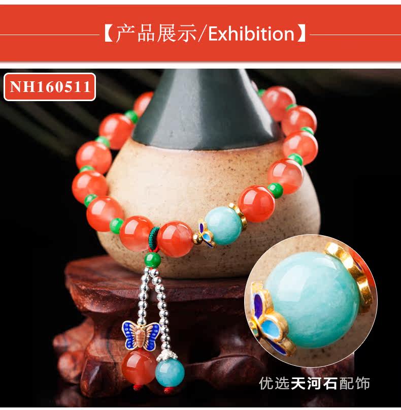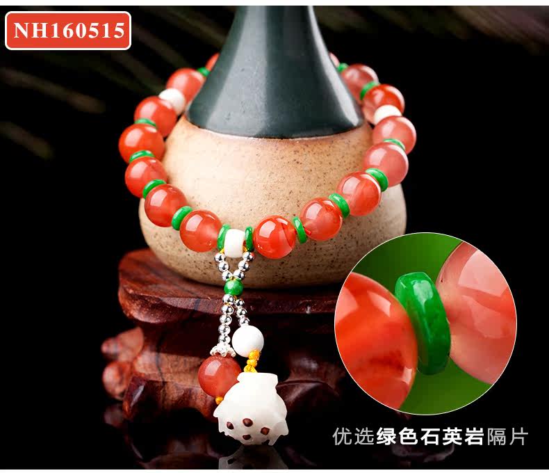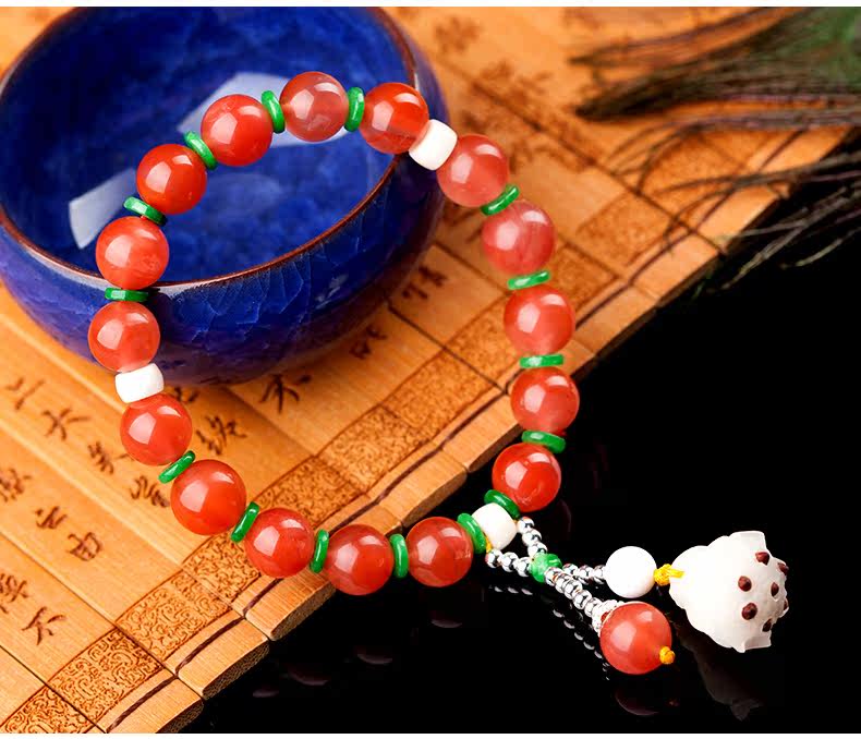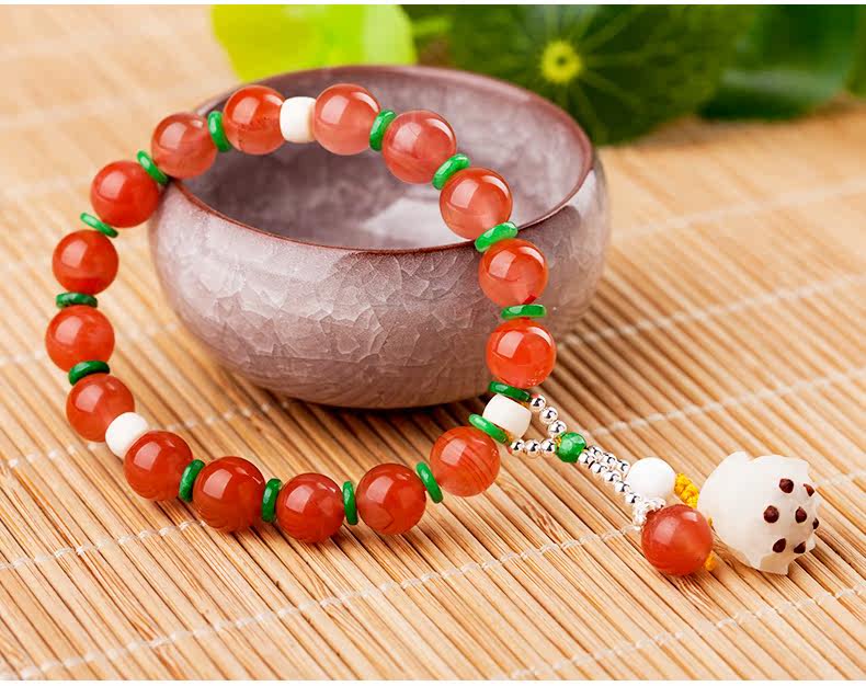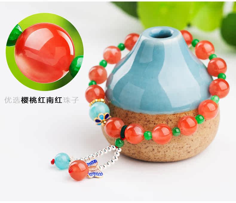 凉山樱桃红南红玛瑙手链女款 手工原创民族风水晶单圈手串