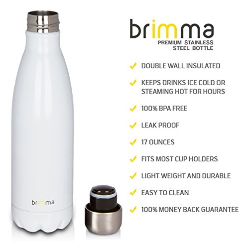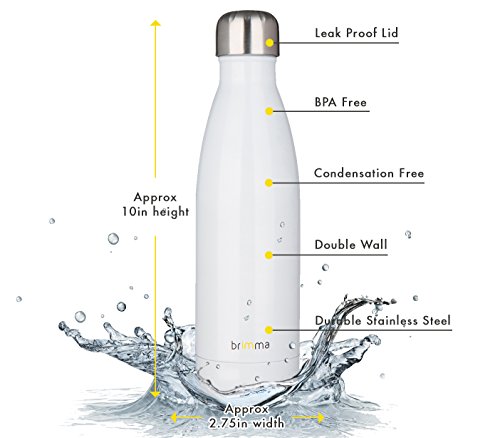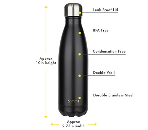 -. Title : Stainless Steel Water Bottle by Brimma - 17 Oz - BPA Free - Double Wall Vacuum Insulated - Sweat Proof & Leak Proof...