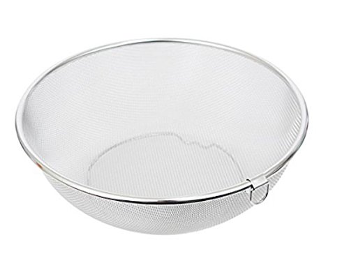 Round Stainless Steel Fine Mesh Food Strainer Basket Vegetable Fruit Noodles Colander D 10" X H 3.4" Deep Hallow Large