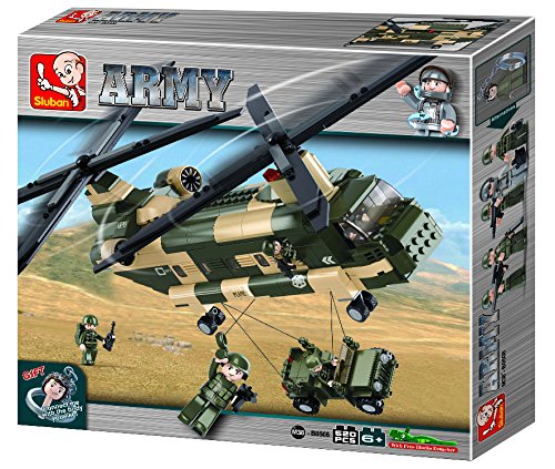 -. Feature : Sluban M38-B0508 Chinhook Transporthubschrauber mit Jeep / 520 Teile / Detaillierter Bausatz mit vielen Spielmöglichkeiten / zusammengebaut 54cm Lang / inkl. 4 mit Bewaffnung