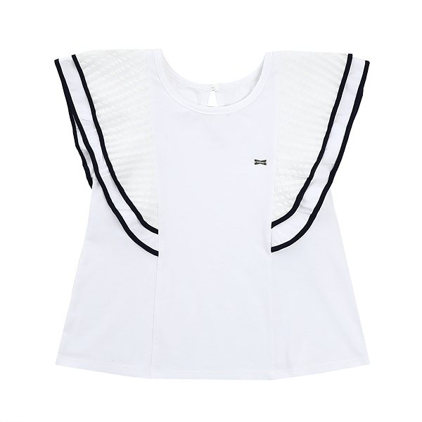 상세설명-레이온혼방으로 편안한 분위기의 티셔츠이며 양옆에 프릴장식이 있어 여성스러운 느낌으로도 코디가 용이합니다.