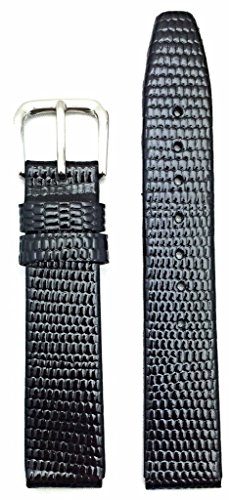 -. Title : 15mm Short Length, Round Lizard Grain, Flat, Black Leather Watch Band