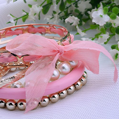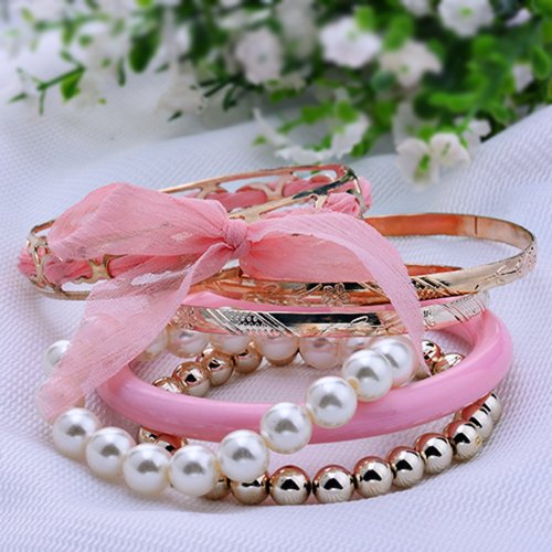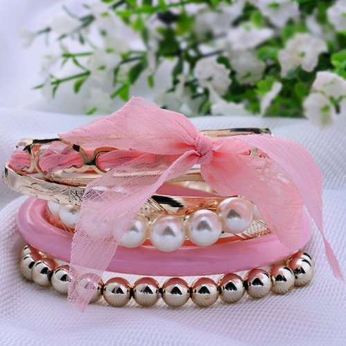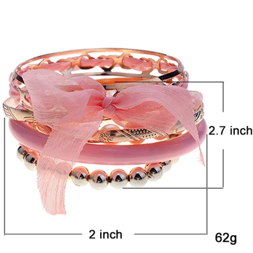 - Title : Lureme Bohemian Pink Fabric Ribbon Knot Pearl Strand Bead Resin Crystal Accent Textured Gold Tone Stackable Bangle Bracelet Set for Women and Teen Girls (600160+)