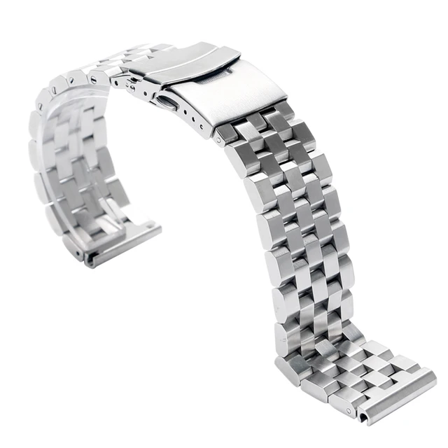 | [해외]24 미리메터 럭셔리 실버 스테인레스 스틸 교체 시계 밴드 스트랩 남성 폴딩 버클 안전 쿨 푸시 버튼 손목 |