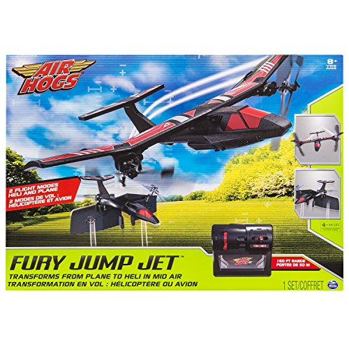 Fly indoors or take to the skies! The Air Hogs Fury Jump Jet is a unique, remote controlled plane like no other! Its rotating wings allow it to hover like a helicopter or fly like a jet. The Jump Jet launches vertically off the ground in hover mode, and then at your command the wings rotate to jet mode, letting you soar through the sky! Take control as you master the Fury’s vertical lift off. Once you’ve reached your desired altitude, activate its mid-air transformation and unleash its wing-powered flight! Fly indoors or take to the skies with the transitional flying power of the Air Hogs Fury Jump Jet!