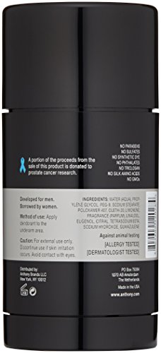 Anthony presents a no non-sense Alcohol Free Deodorant which effectively prevents odor while providing the all day protection that you need. Its aluminum and alcohol free formula prevents under-arm staining and it does not sting or dry out skin. This must-have item is a clear solid stick which does not mark or stain dark clothes.Feature