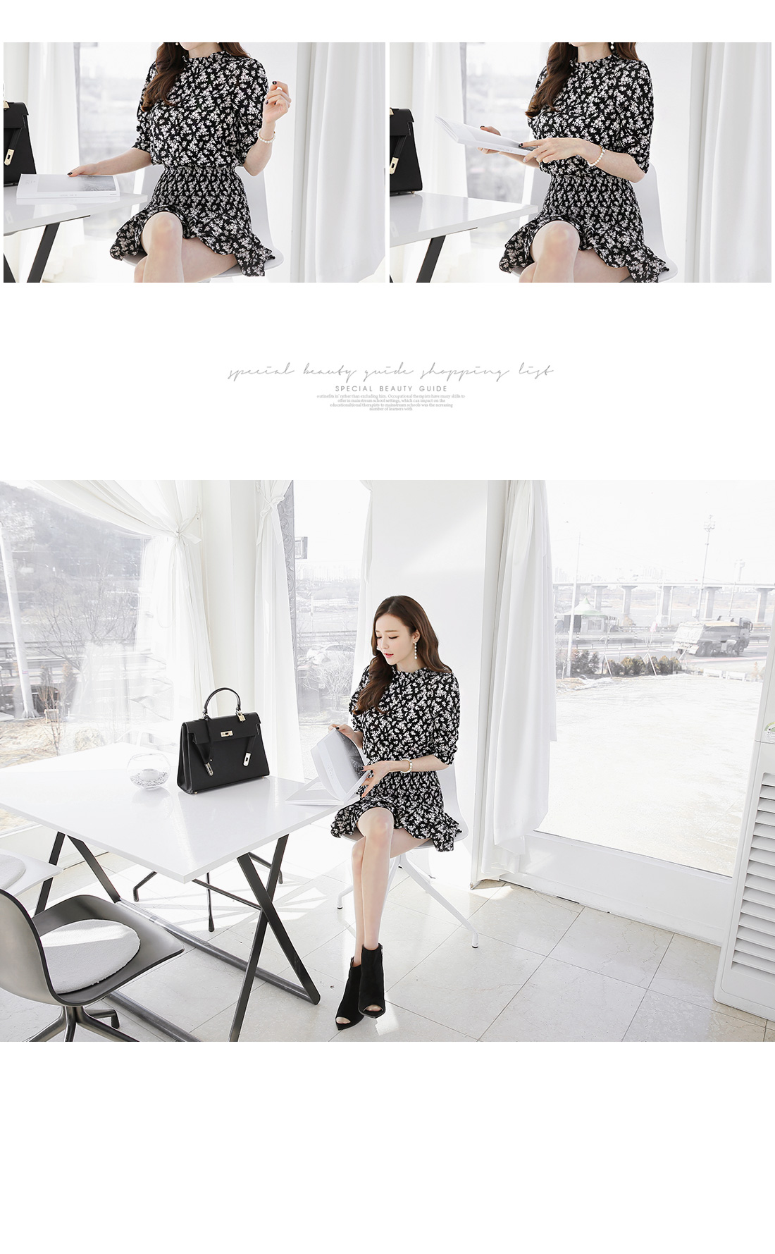 싱그러움 물씬 느껴지는 플로럴패턴의 스모킹원피스에요! 플로럴패턴으로 가득채운 스타일이 봄시즌에 어울리는 룩을 완성해 주구요 허리부터 힙라인은 스모킹 디테일로 슬림하게 잡아주는 디자인이랍니다~ 소매와 밑단은 프릴로 포인트를 주어 로맨틱한 무드까지 더해 주구요 데일리룩에는 물론 격식있는 자리에도 손색없이 어울리는 원피스에요! 니트나 가디건에 레이어드해도 예쁘게 연출 가능한 원피스랍니다^^