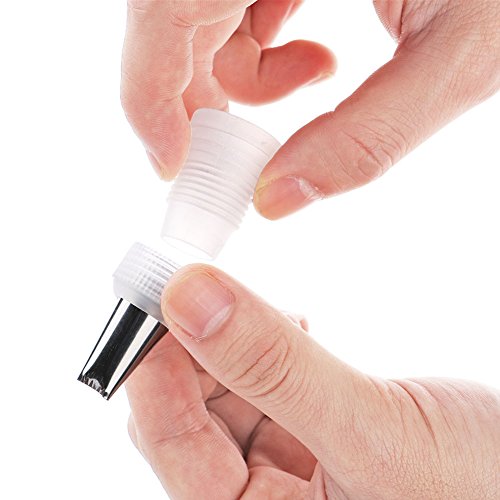 - Safe, Decent, High Quality - Tips are made of strong and durable 100% food grade 304 stainless steel, seamless and one piece design. The coupler is made of PP plastic. The icing bag is made of food-grade silicone. FDA and LFGB approved, BPA free. Reusable, non-stick, tasteless, nontoxic.