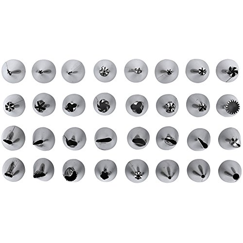 - Save Your Money and Time - 32 pcs of stainless steel piping tips + 2 flower nails + 2 standard coupler + 2 reusable silicone icing bag, with which you can create all types of patterns on cake.