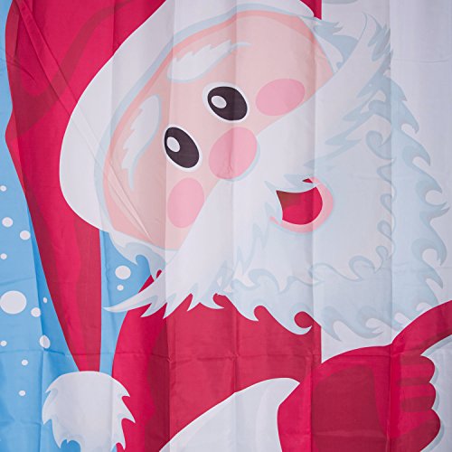 Moldiy Santa Claus Holiday New Year Print Polyester Fabric Shower Curtain Blue White Red,72inchx72inch