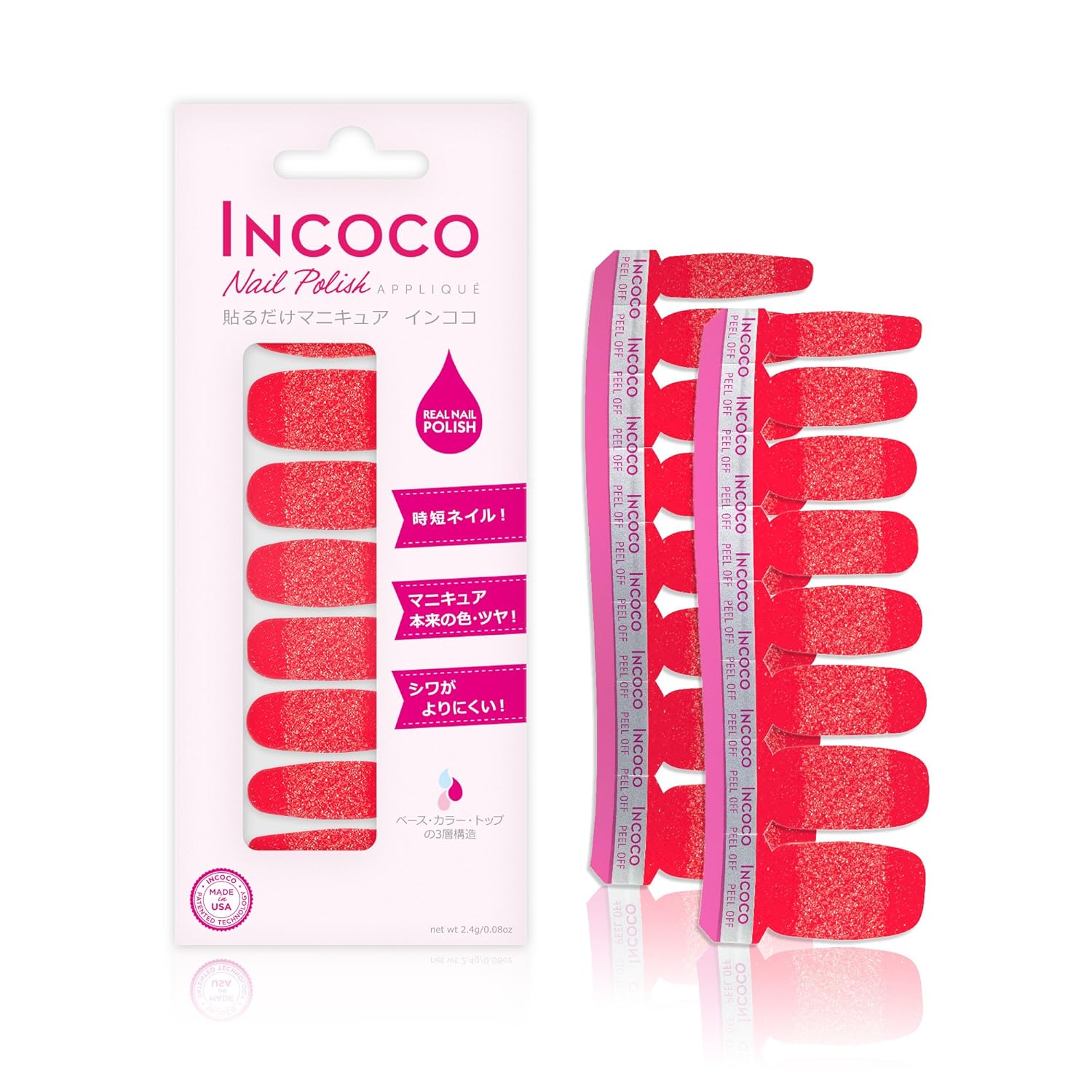 アメリカ生まれの貼るだけマニキュア 「インココ・ネイル・ポリッシュ・アップリケ」(Incoco)はマニキュア成分でできたシートタイプのマニキュアです。乾かす時間不要、塗りムラ知らず、且つマニキュアならではの発色やツヤを楽しめます。インココでまったく新しいマニキュア体験をしてみませんか!【数量限定】半透明なピンクベースにシルバーグリッターのデザインネイル。宝石をまとったドレスのように鮮やかなピンクが指先を華やかに演出♪