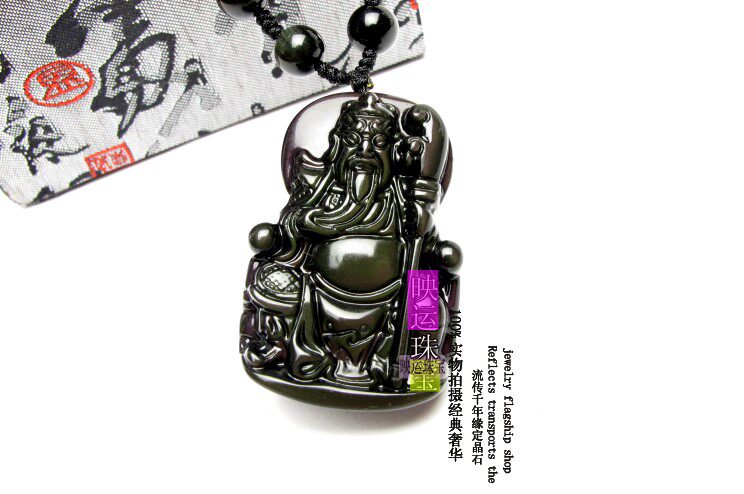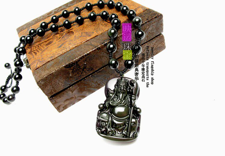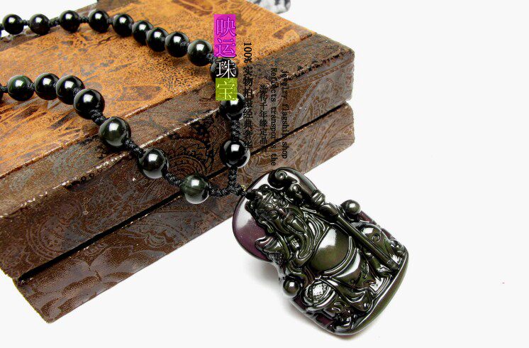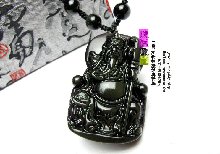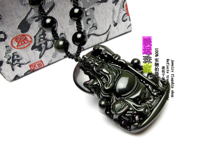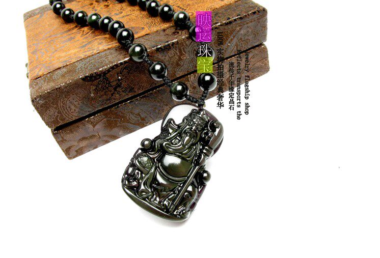 天然黑曜石关公吊坠关羽武财神项坠 男女饰品礼物