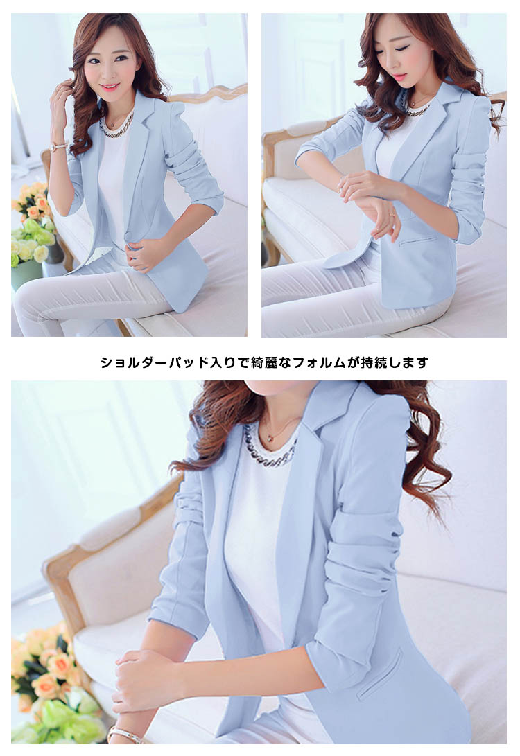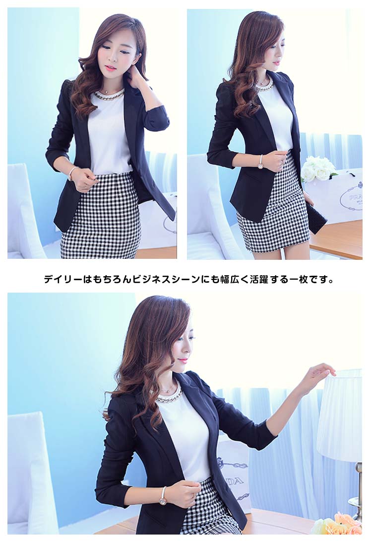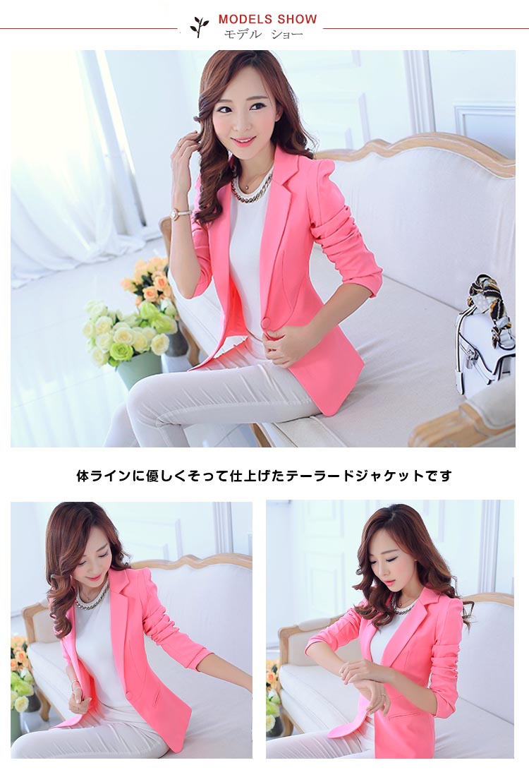 | 体ラインに優しくそって仕上げたテーラードジャケットです秋のきちんとした装いに一着は持っておきたいジャケットデイリーはもちろんビジネスシーンにも幅広く活躍する一枚です。ショルダーパッド入りで綺麗なフォルムが持続します | |