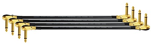 4 Units - Mogami 2524 - 18 Inch - Guitar Bass Effects Instrument, S-Shaped Patch Cable with Premium Gold Plated ¼ inch (6.35mm) Low-Profile, Right Angled Pancake type Connectors