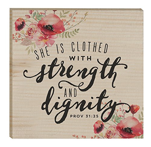 She Is Clothed With Strength & Dignity Poppies 3 x 3 Inch Solid Pine Wood Rustic Magnet