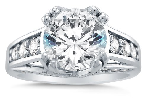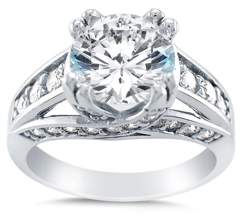 - Title : Size 6.5 - Solid 14k White Gold Large Big Heavy Round Brilliant Cut Solitaire with Round Side Stones Highest Quality CZ Cubic Zirconia Engagement Ring 2.5ct.