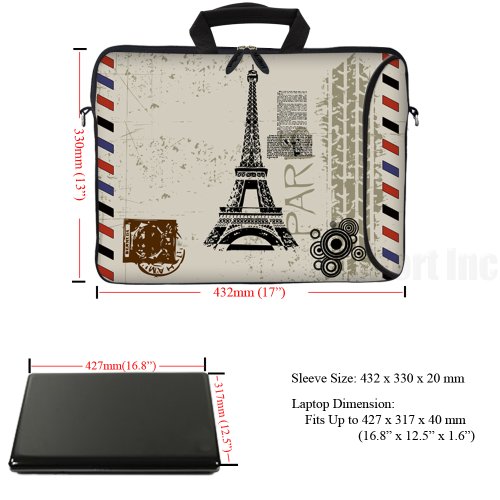 - Title : Meffort Inc 17 17.3 inch Neoprene Laptop Bag Sleeve with Extra Side Pocket, Soft Carrying Handle & Removable Shoulder Strap for 16" to 17.3" Size Notebook Computer - Paris Design