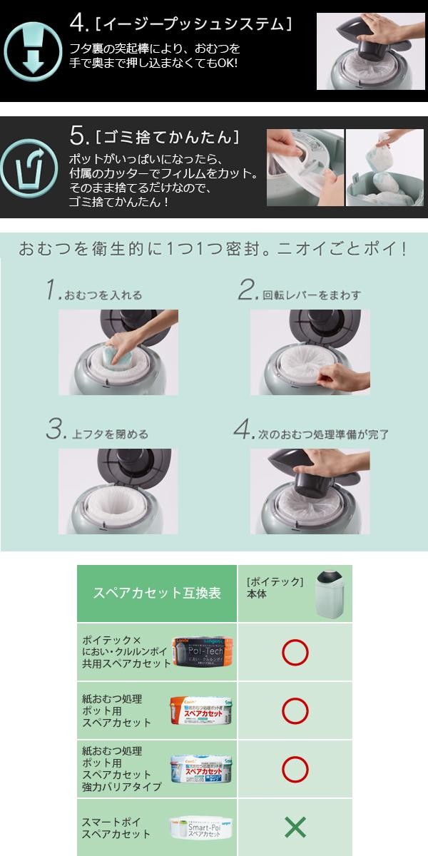 | 付属品 | 99%抗菌カセット×1(赤ちゃん用おむつ約105~120枚分処理可能)、取扱説明書 |