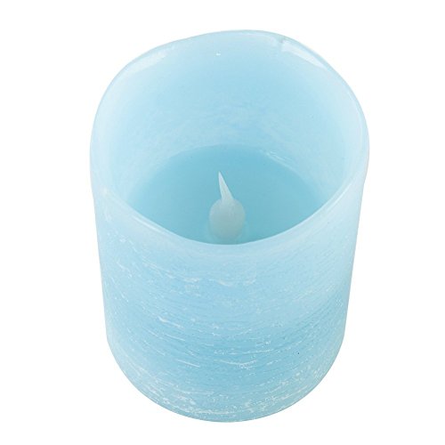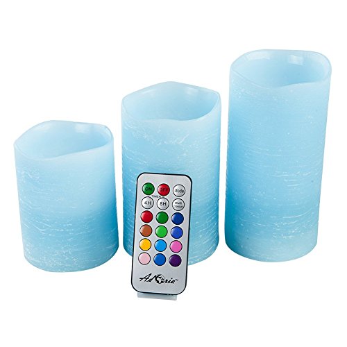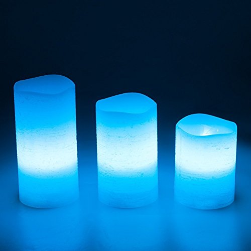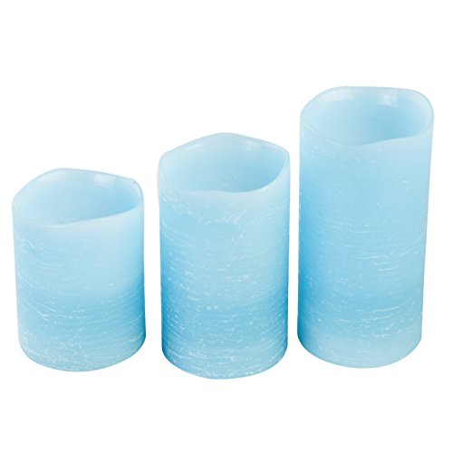 Remote control color changing candle light, flameless flickering and frosted pillar wax battery operated led candle with timer, blue color, set of 3