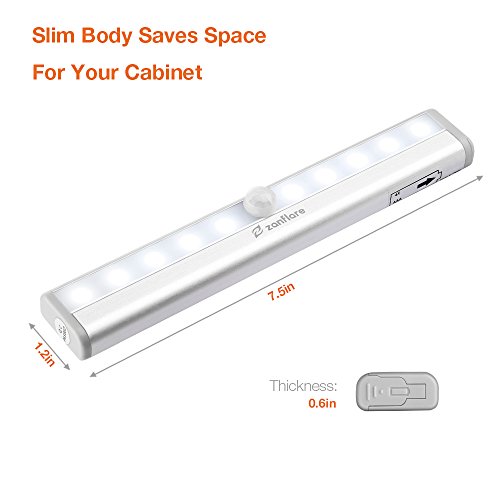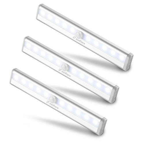 Zanflare Motion Sensor Closet Lights, Battery Operated Magnetic LED Night Light, DIY Stick-on Anywhere Portable Wireless 10 LED Wardrobe/Stairs/Step Light Bar, Safe Lights