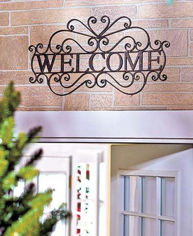 Studio : Unbranded Publisher : Unbranded Binding : Kitchen Product Description Usher friends and family into your home with the Metal Welcome Wall Plaque. This ornate piece has the look of oil-rubbed bronze. It's tailor-made for hanging in your foyer above an entryway door, on a front porch or over the garage. 25-3/8"W x 13"H. Ready to hang. Elegant scrollwork design Warm greeting for friends, family and guests Details: 25-3/8"W x 13"H Metal 0