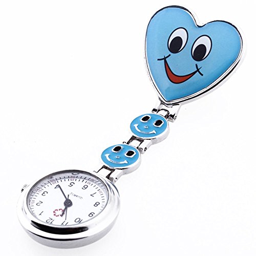 -. Title : SODIAL(R) Blue Heart Quartz Movement Clip Nurse Brooch Fob Tunic Watch Smiley Face