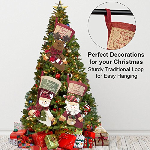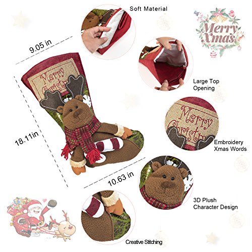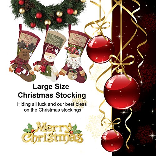 - 【Unique Christmas Accessories】: Fantastic designed Santa stockings with Santa Claus, Snowman, Reindeer. Presents and Treats for a Super Attractive Christmas Stocking.