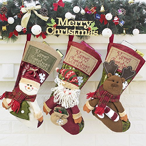3 PCS Set Christmas Stockings, 18'' Xmas Stockings Hanging, 3D Santa Claus/Snowman/Reindeer Character Santa Gifts Socks Party Favors Decorative Hanging Ornaments