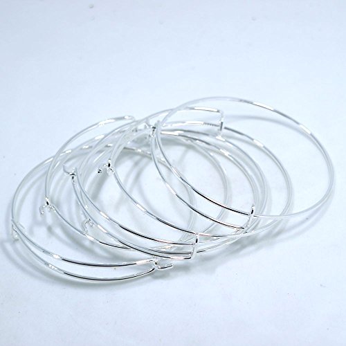 5pcs Shiny Silver White Expandable Wire Bangle Bracelet for Charms Adjustable for Stacking Charm Bracelets Bracelet Blanks