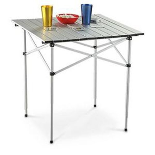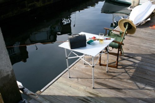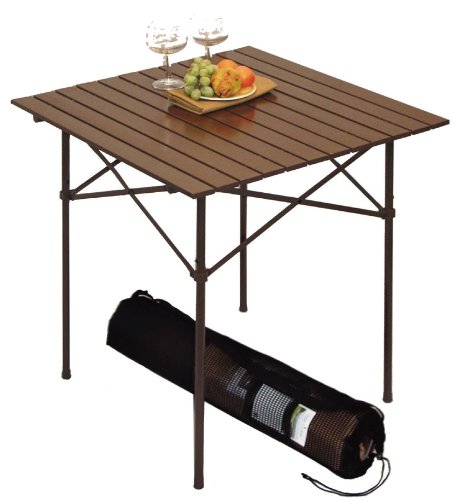 Studio : Table in a Bag Publisher : Table in a Bag Binding : Lawn Patio Product Description Regular Tall Aluminum Table in a Bag. Regular Tall Aluminum Table in a Bag Our Regular Tall Aluminum Table is made from recycled aluminum, and has a water resistant top, 2 cross bars, 1 leg set and a carrying bag. Easy-assembly folding table set-up size is 27" wide by 27" long by 27" high. Creates an instant side table for setting drinks. Top rolls up to save space when packed. The csollapsible table rolls up in seconds and fits into an easy carrying bag. 0
