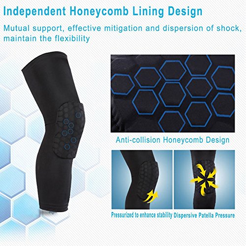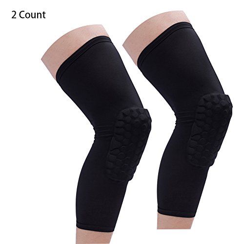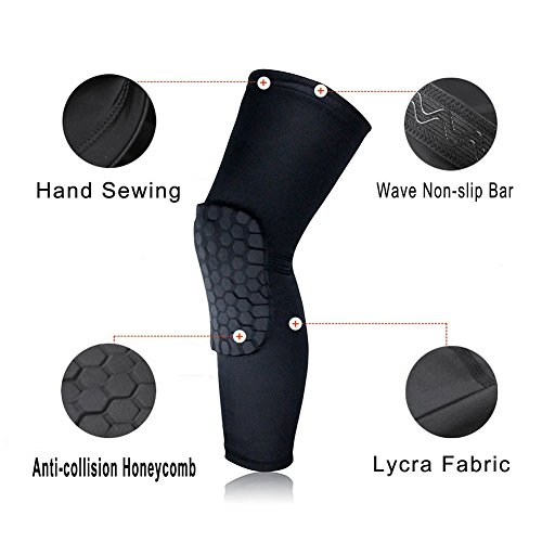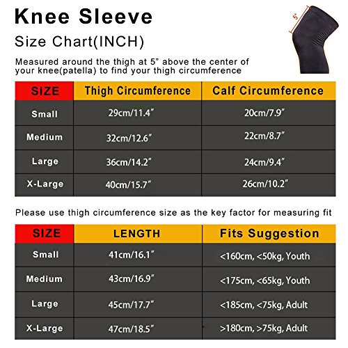 -. Feature : 1)Helps reduce the chance of injury and supports enhanced performance for the sports such as Basketball, Volleyball, Rugby, Martial Arts, Lacrosse, CrossFit, Skating, Skateboarding and so on. / 2)The front knee is equipped with a high-density cellular gaskets. The high-abrasion resistance of the gasket and the gap in the honeycomb can absorb most of the force at the moment of collision, effectively protecting the knee from severe impact damage / 3)Embedded wave anti-skid silicone bar, can effectively prevent letting down and relieve the pressure in the movement.Adopting microfiber material, achieve the soft, comfortable, mild as one and control body skin sweat and body temperature, effectively promote venous return / 4)84% Polyester/ 16% spandex / 5)Includes one pair(2 sleeves) Kindly refer to size chart in product images. Please note that compression wear has a tight fit. For a less tight fit, please select the next size up.