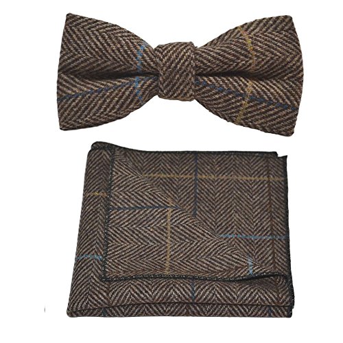 Studio : King Priory Publisher : King Priory Binding : Apparel Product Description Luxury walnut brown check bow tie and pocket square set in a premium herringbone fabric. Adjustable to a neck size of up to 19" with metal hook eye fastening. Pocket square measures approx 25cm x 25cm Forms part of the King Priory Vintage collection with matching waistcoat and tie also available. 0 |