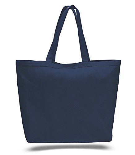 23" Extra Large Canvas Tote Bag w/Velcro Closure Pool Beach Shopping Travel Tote Bag Eco-Friendly (1, Navy)