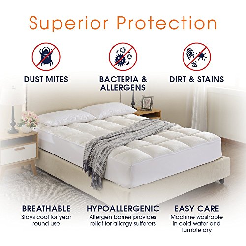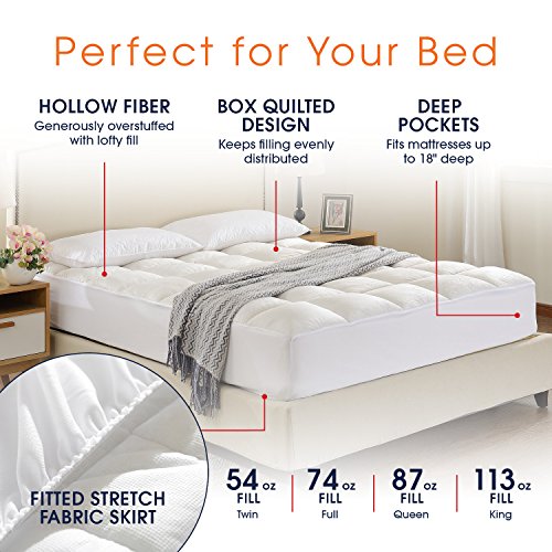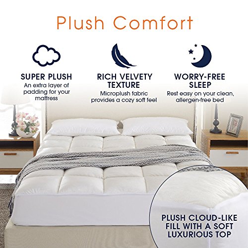 -. Brand : Cheer Collection -. Feature : Luxurious Comfort: Make sleeping a dream with the extreme comfort this overfilled mattress topper provides. Microplush has a rich velvet texture for the ultimate softness. You won't want to to get out of bed in the morning! / Super Plush: Generously overfilled with ounces of hollow fiber fill which is designed to add a super thick layer of padding for added comfort and breathability. Wake up feeling refreshed and vigorous. / Deep Pocket: Elastic stretch fabric around the full perimeter easily fits deep mattresses. Stretches to fit any mattress up to 18" inches thick and stays in place without any slipping and protects the sides of your mattress / Hypoallergenic: The holow fiber fill is hypoallergenic allowing the mattress pad to keep allergy sufferers and children safe as well as protect your mattress from exposure to dust mites and other allergens / Easy Care: Machine washable in cold/warm water, tumble dry on low or no heat. -. Label : Cheer Collection -. Manufacturer : Cheer Collection -. ProductGroup : Home -. ProductTypeName : HOME_BED_AND_BATH -. Publisher : Cheer Collection -. Studio : Cheer Collection -. Title : Cheer Collection Super Luxurious Ultra Soft Overfilled Microplush Fitted Mattress Topper