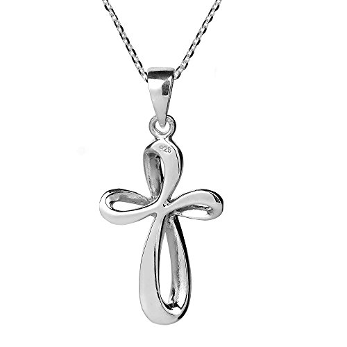 Crafted for lovers of religious and Christian symbolism, this 'Infinity Cross' pendant may look simple but it carries a profoundly powerful message of love, faith and Jesus Christ. Made by hand from .925 sterling silver in the workshop of Thailand's Artisan Khun Kung, a thin strand of sterling silver is wound into infinity loops and depicted with a bright polish which rests upon an 18 inches .925 sterling silver cable chain. Great for all styles and outfits and perfect for everyday wear. PLEASE NOTE: The handcrafted nature of this product will produce minor differences in design, sizing and weight. Variations will occur from piece to piece, measurements may vary slightly.AERAVIDA works directly with gifted and talented Artisans from all over the world. At the core of our philosophy is fair trade and fostering a sustainable future for our Artisans.
